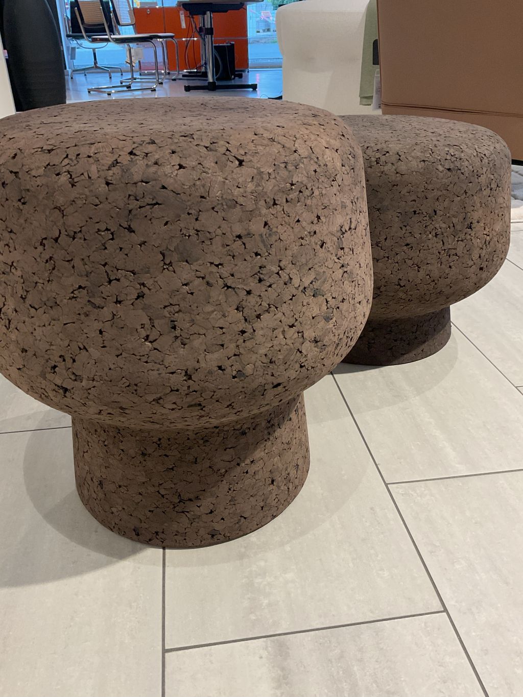 Hocker oder Beistelltisch. Dunkler Kork mit Imprägnierung, aus einem Block gefräst.