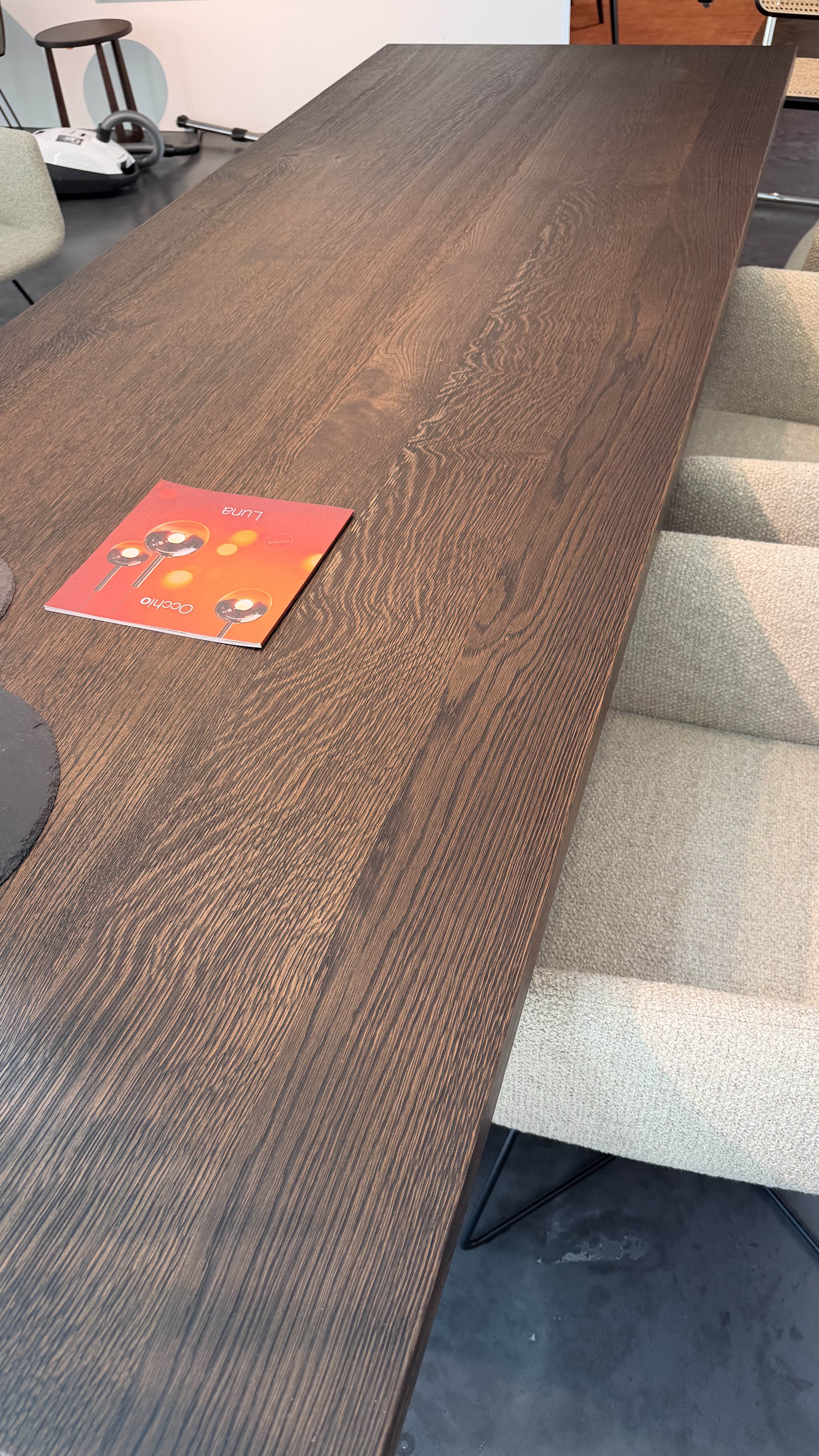 Steg: Eiche geräuchert anthrazit geölt.